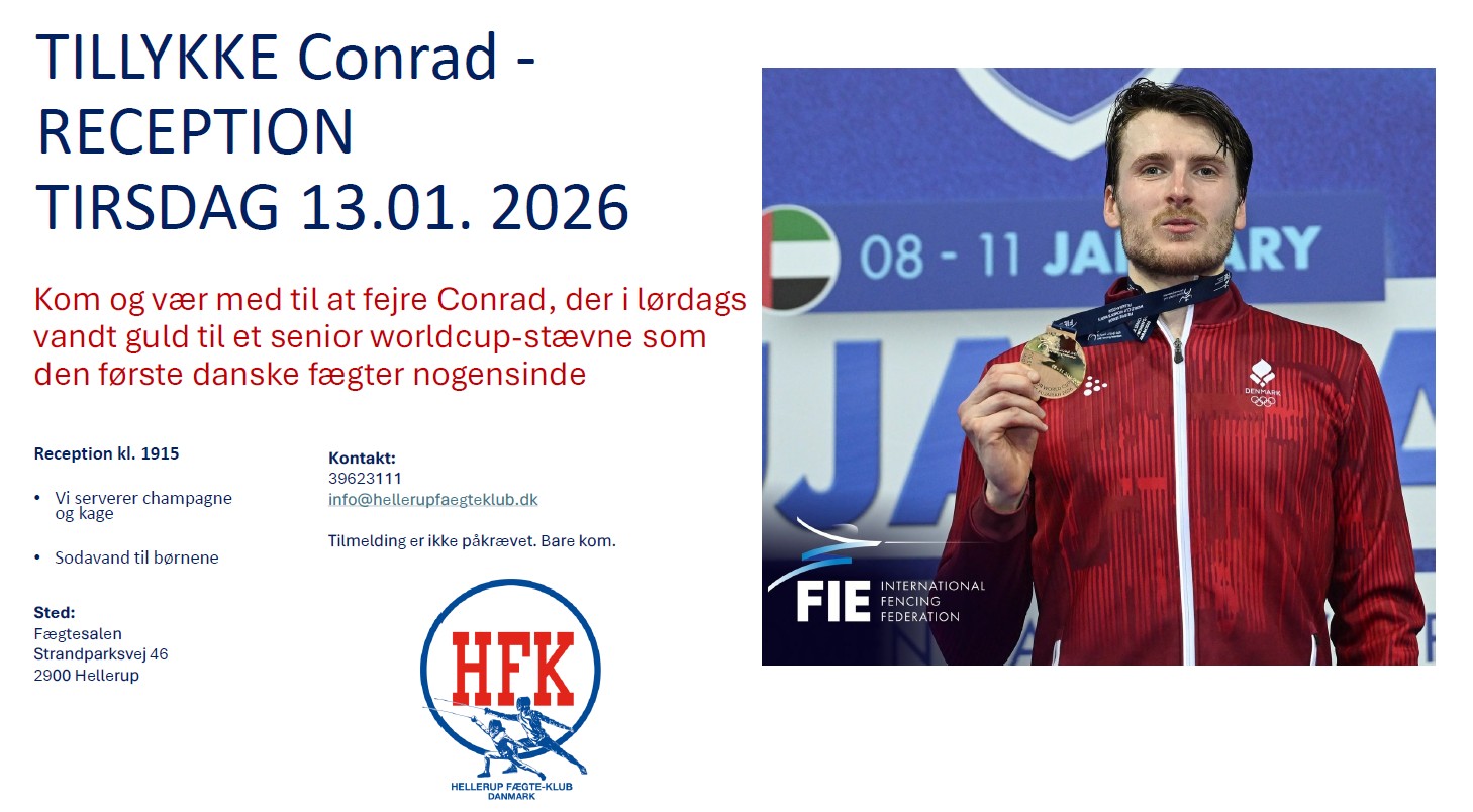 Reception 13.01. 19.15 World Cup Gold Reception. Tillykke Conrad