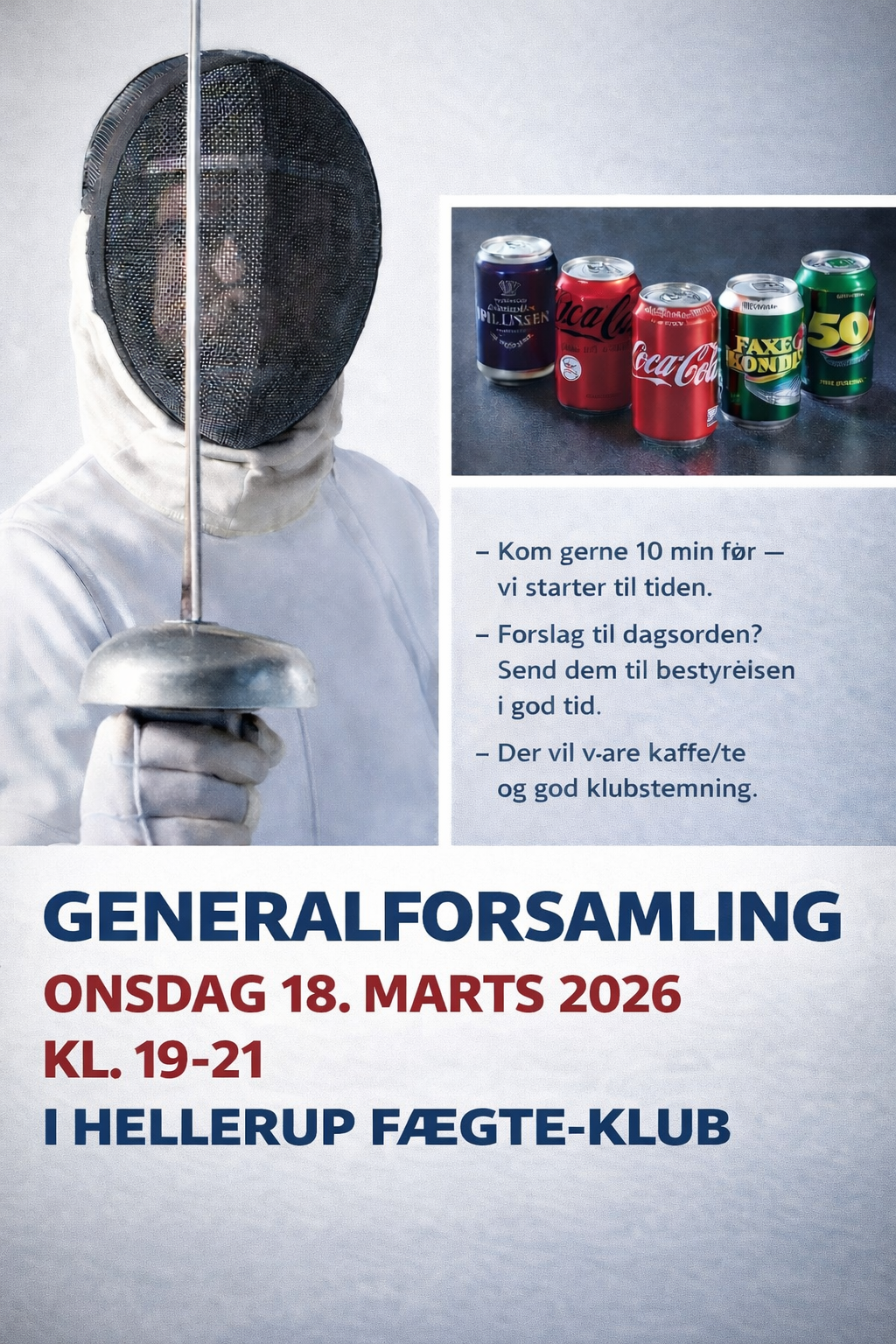 Hermed indkaldelse til Generalforsamling Onsdag den 18. Marts kl 19 i Hellerup Fægteklub!